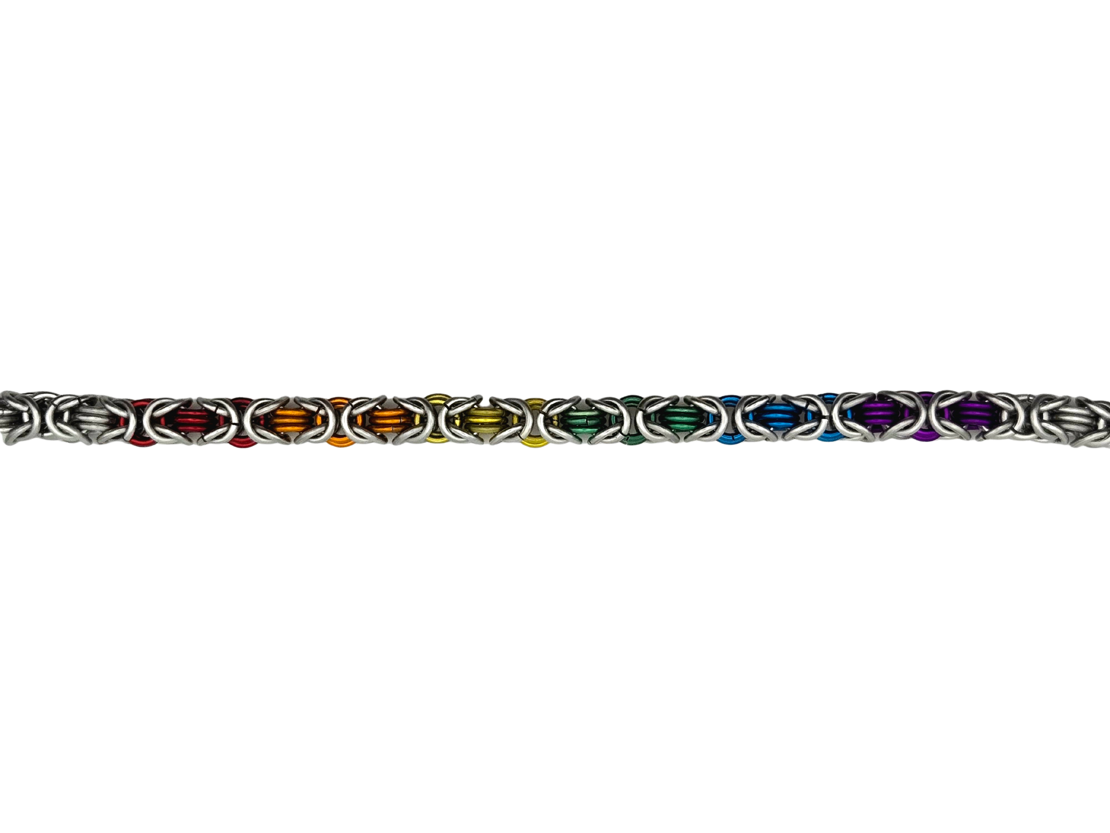 We offer bracelets in three weave patterns: byzantine, barrel, and sweet pea. They can be made in up to three colors; just let us know! Our bracelets vary slightly in length depending on the weave, so please check the pictures or contact us if you have any questions.